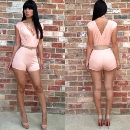 easy-to-wear, all-in-one ensemble. Features sweet pink color,with a fit silhouette and a v-neckline.