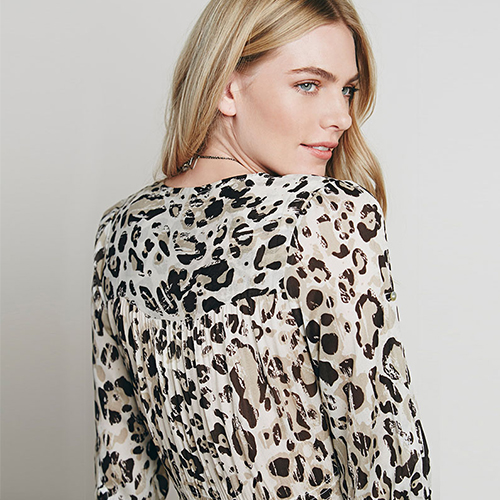 Covered in leopard floral print with a partial button-down front for a bit of retro charm, this sleeveless dress