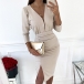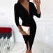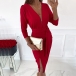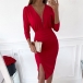 There is no need to worry about what to wear for your fancy events if you have this dress in your team. Solid color style,the deep v-neck and slit hem design make this piece look so sexy and alluring. Finished with long sleeve,high waist and a fit silhouette,this dress also can portray your slender figure. Dress it up with your sexy heels and elegant clutch,you can look beautiful and charming enough!