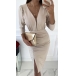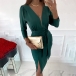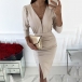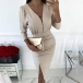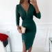 Sexy Deep V-neck Slit Hem Long Sleeve High Waist Slim Fit Party Dress