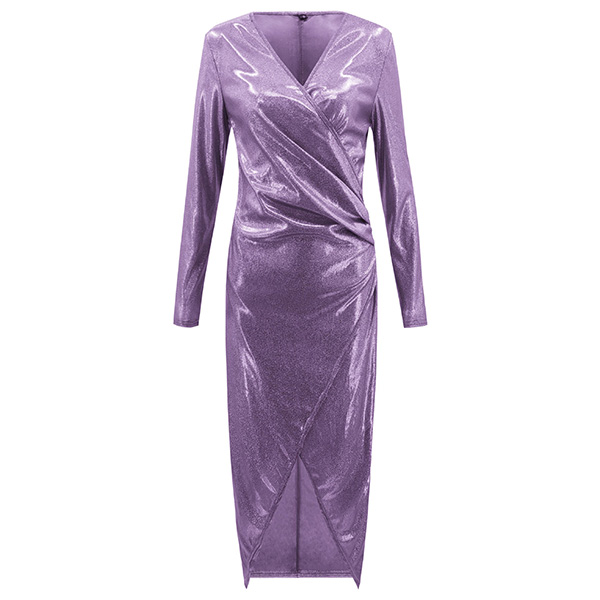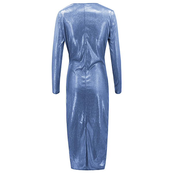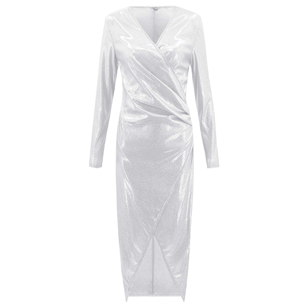 Sexy Deep V-neck Slit Hem Long Sleeve Party Dress