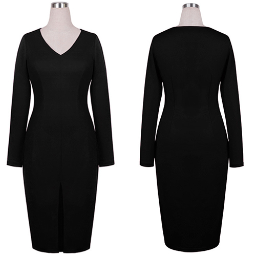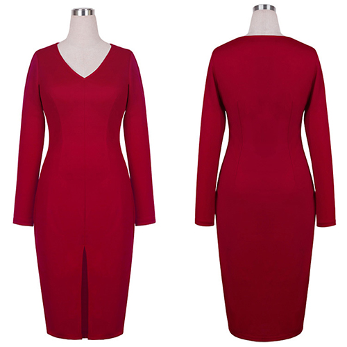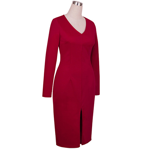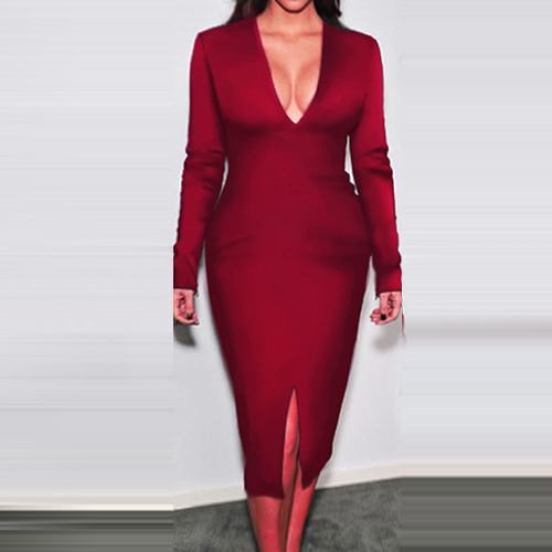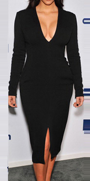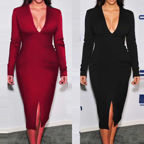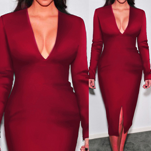 for this piece. Solid color style,its deep v-neck and slit hem design makes this dress so