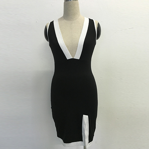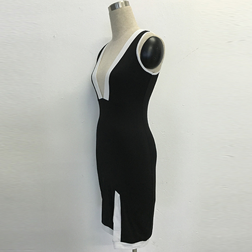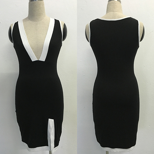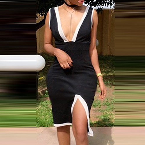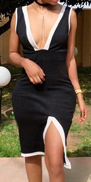 Contrast color style,its deep v-neck and slit hem design makes it look so charming and feminine. Wanna look