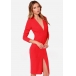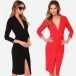 This dress features solid color style,long sleeve,sexy deep v-neck and slit hemline design. Slim fit and package hip design,perfect show your slender figure. No matter for working,dating or gathering,you can hold it.