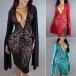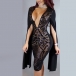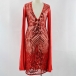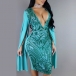 Sexy Deep V-neck Slit Long Sleeve Slim Fit Sequin Dress
