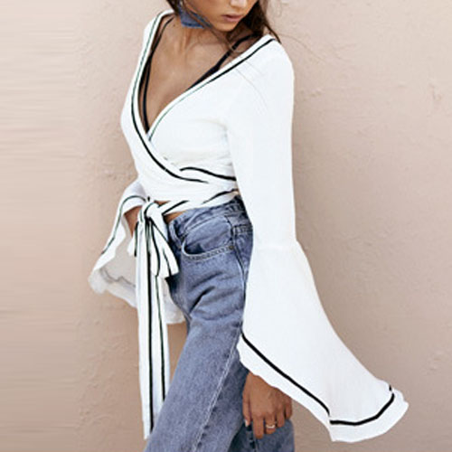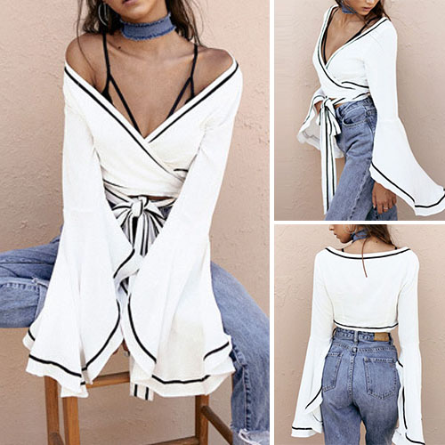 I promise only need one glance,you would be attracted by this crop top. Its distinctive design like trumpet sleeve,