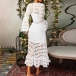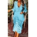 Sexy Deep V-neck Trumpet Sleeve Slim Fit See-through Lace Dress