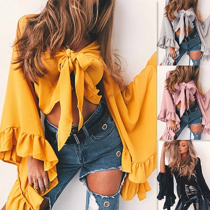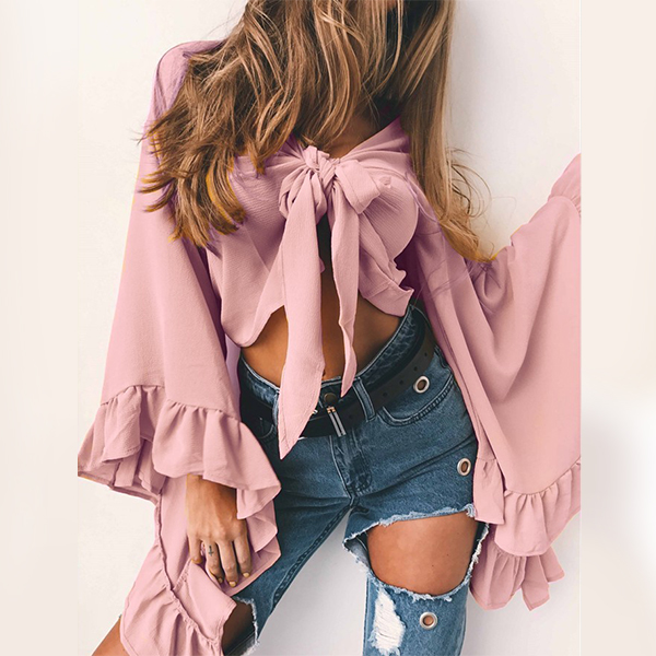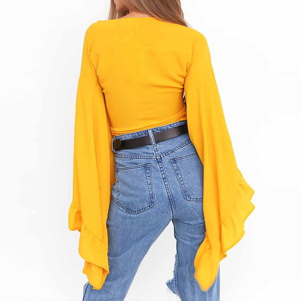 lace-up design at front and unique trumpet sleeve design make this piece look so distinctive and sexy.
