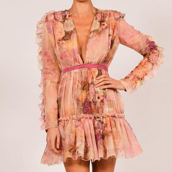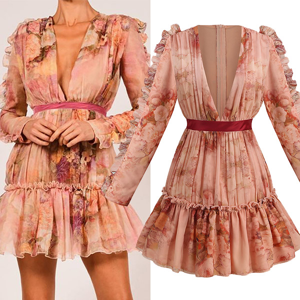 No matter when and where you are,you can trust in this dress to make you be the focus. Features chic and eye-catching printed details,the deep v-neck and ruffle hem design make this piece full of sweet,sexy and flirty vibes. And the unique sleeve design will boost its entire charm. So why not slip into this dress to express your beauty and charm?