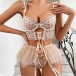 Sexy Diamond Embroidery Lace-up Ruffle Tutu Three-piece Lingerie Set