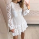 Sexy Dots Gauze Spliced Long Sleeve Round Neck Dress
