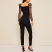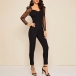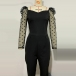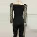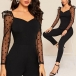 Sexy Dots Gauze Spliced Long Sleeve V-neck SLim Fit Jumpsuit