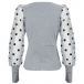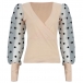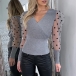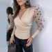 Sexy Dots Gauze Spliced Long Sleeve V-neck Slim Fit Top