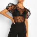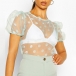 Sexy Dots Gauze Spliced Puff Sleeve Round Neck Top