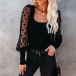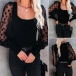 Sexy Dots Gazue Spliced Long Sleeve Square Collar Top