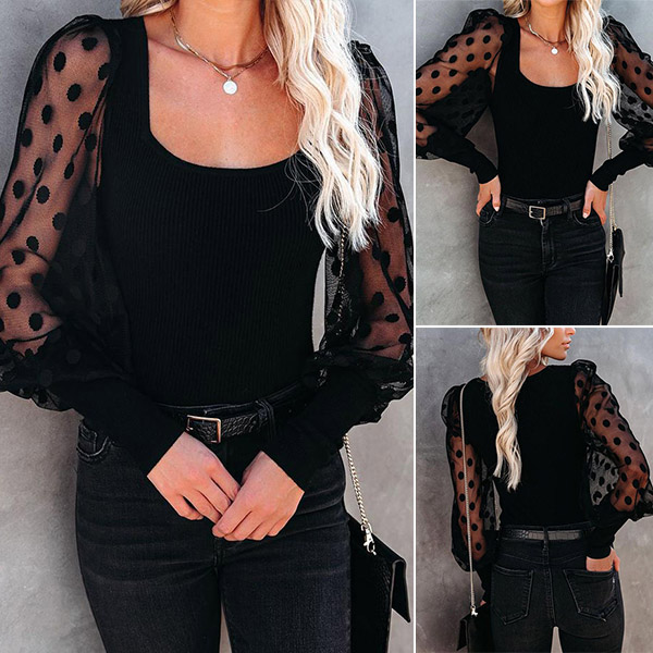 At your first sight,you may attracted by this wonderful top that combines of stylish and flirty vibes. The gauze long sleeve with dots details makes it look so eye-catching and stylish,while the square collar design will further enhance your feminine appeal. You can simply match with your favourite pants to start your wonderful day.