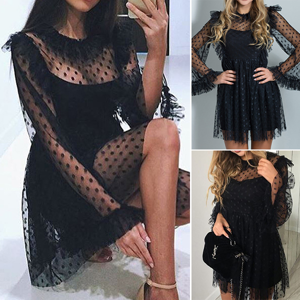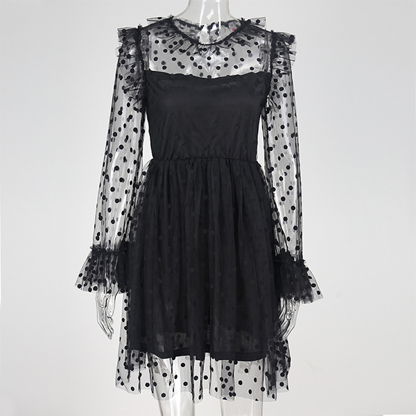 delicate and stylish. Moreover,its dots printed see-through gauze spliced details make this piece look so
