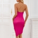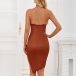Sexy Draped Neck Drawstring Backless Chain Bodycon Dress