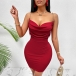 Sexy Draped Ruched Bodycon Backless Chain Bodycon Dress