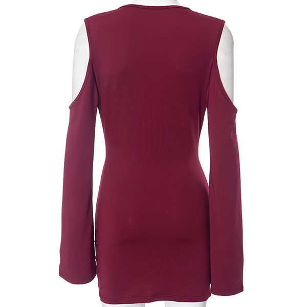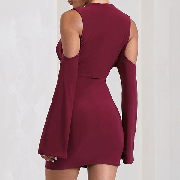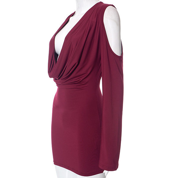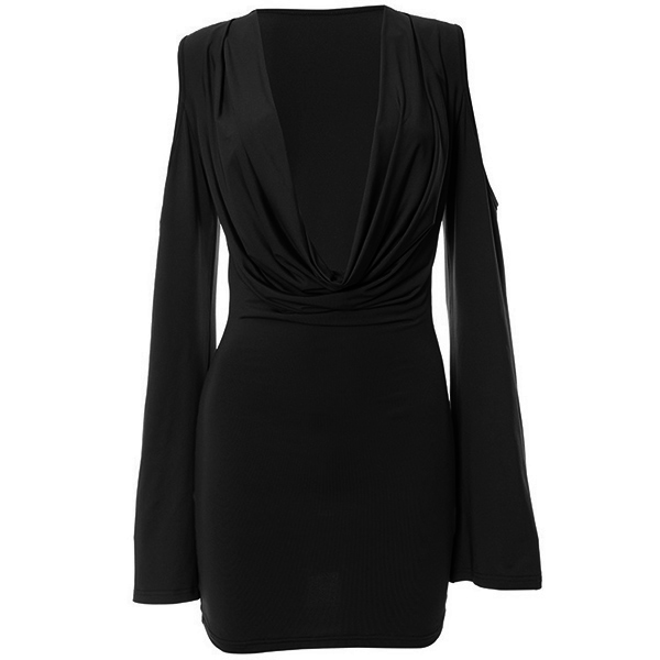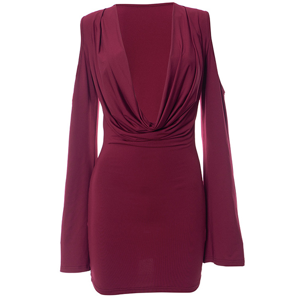 Sexy Draped V-neck Open-shoulder Long Sleeve Bodycon Dress