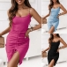 Sexy Drawstring Ruched Chain Bodycon Chain Slip Dress