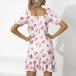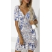 Sexy Drawstring V-neck Short Sleeve Ruffle Hem Printed Dress