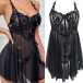 Sexy Embroidered 3D Floral Decoration Sweetheart Neckline Lace Spliced Gauze Nightwear Dress