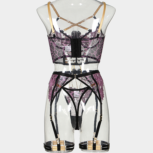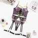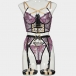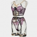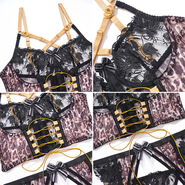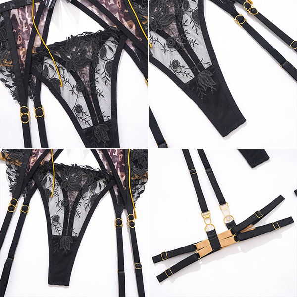 Sexy Embroidery Contrast Color Lace-up Five-piece Lingerie Set