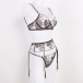 Sexy Embroidery Spliced See-through Lingerie Three-piece Set