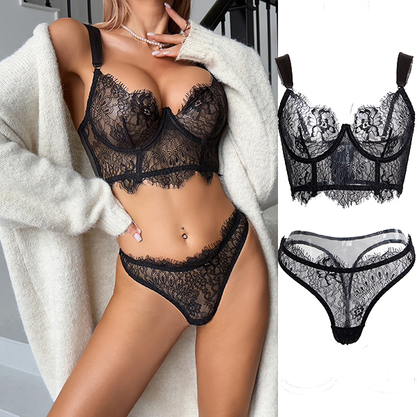Sexy Eyelash Lace Two-piece Lingerie Set
