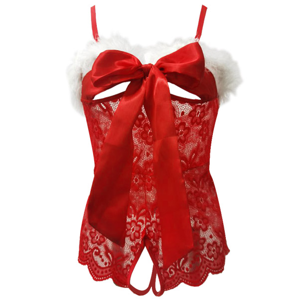 Wanna a proper piece for your hot nights,honeymoon time and lingerie parties? Then look no further than this piece. Sling style,the lace,faux fur details and bow-knot design make it look so sweet,alluring and sexy. It can be the secret weapon to exude your alluring side.