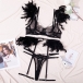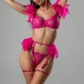Sexy Feather Spliced Lace Chain Three-piece Lingerie Set