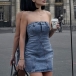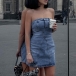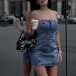 Sexy Figure Hugging Denim Tube Dress with One Line Collar