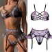 Sexy Floral Embroidered Crossover Three-piece Lingerie Set