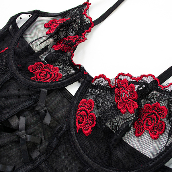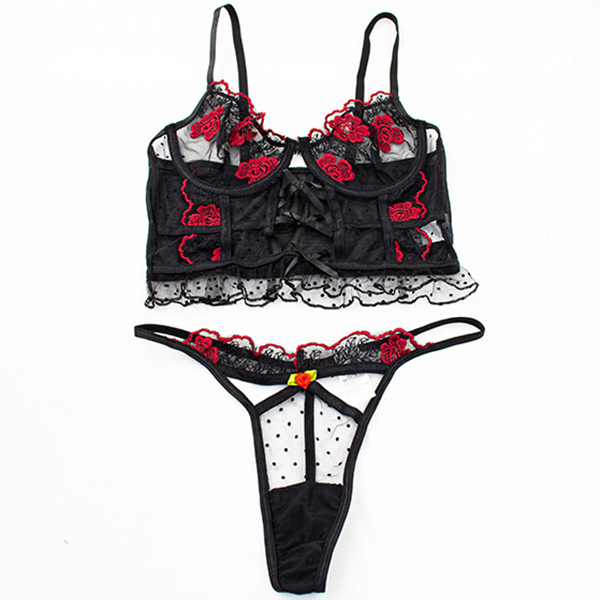 Sexy Floral Embroidered Cut Out Two-piece Lingerie Set