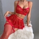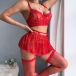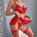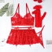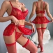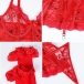 Sexy Floral Embroidered Ruffle Lace Four-piece Lingerie Set