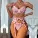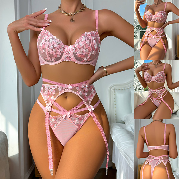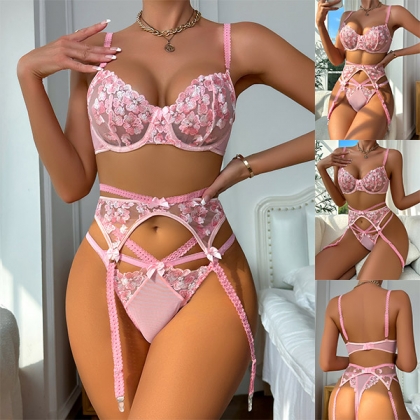 Sexy Floral Embroidered Three-piece Lingerie Set