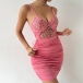 Sexy Floral Embroidered V-neck Side Lace-up Ruched Bodycon Dress