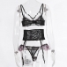 Sexy Floral Embroidery Cross-criss Three-piece Lingerie Set