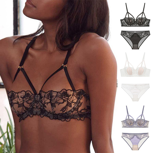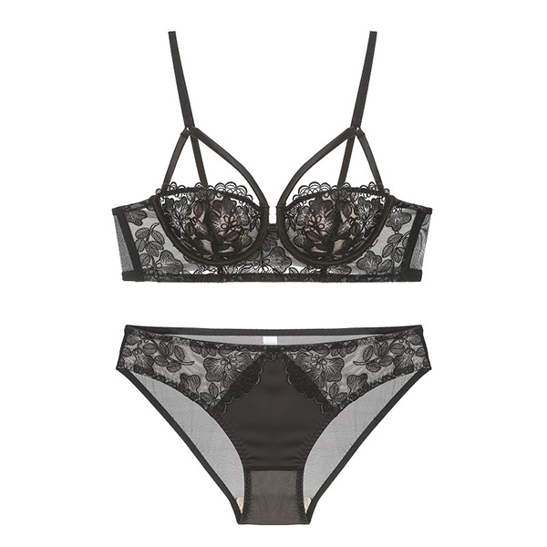 Sexy Floral Embroidery Cut Out Two-piece Lingerie Set