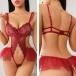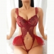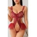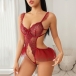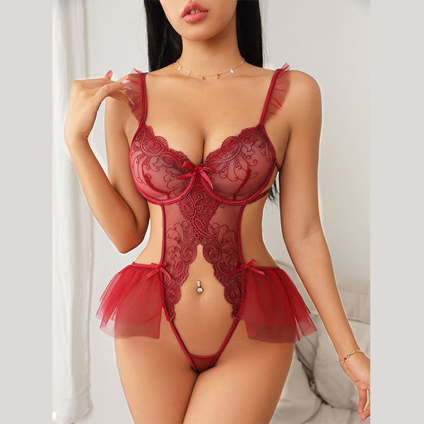 Sexy Floral Embroidery Front Cut Out Ruffle Lingerie Bodysuit