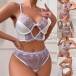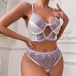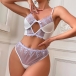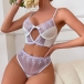 Sexy Floral Embroidery Front Cut Out Semi-through Two-piece Lingerie Set
