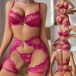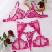 Sexy Floral Embroidery Heart-ring Semi-through Three-piece Lingerie Set