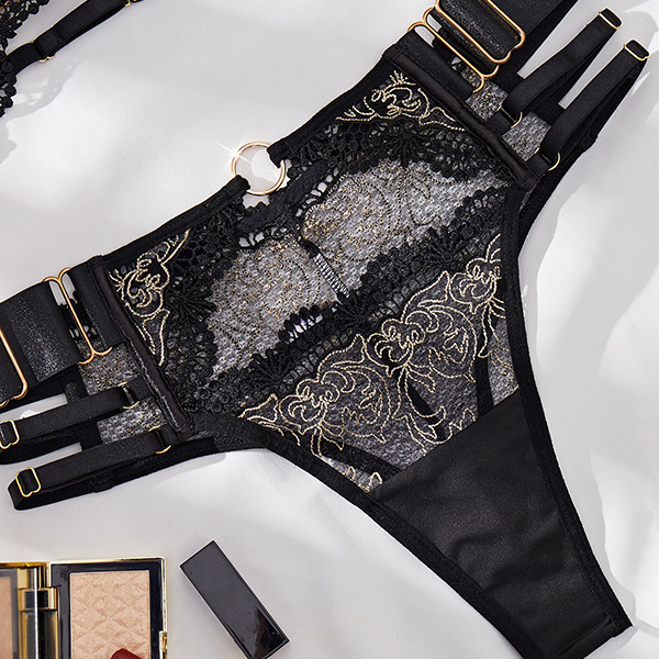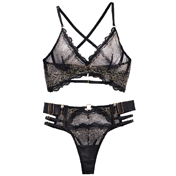 Sexy Floral Embroidery Lace Spliced Two-piece Lingerie Set