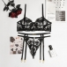 Sexy Floral Embroidery Lace Three-piece Lingerie Set