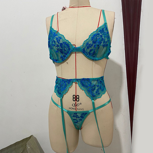Sexy Floral Embroidery Lace Three-piece Lingerie Set