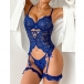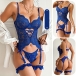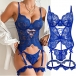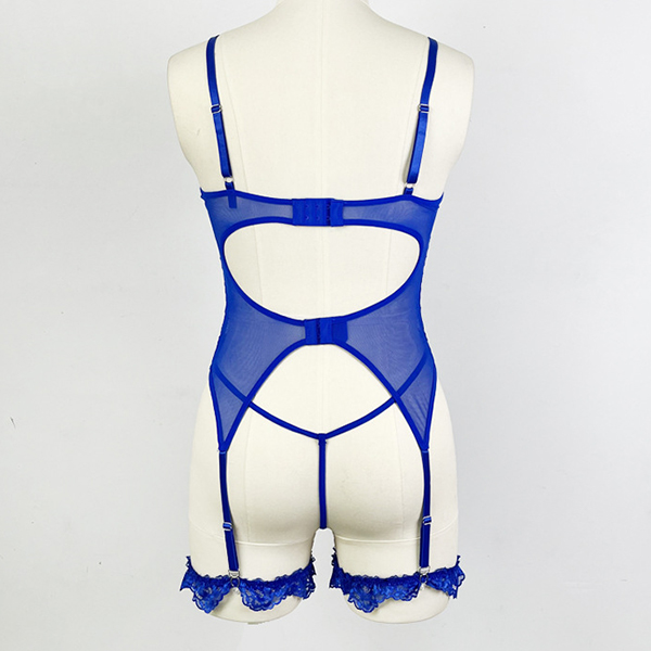 Sexy Floral Embroidery Lace-up Bowknot Ruffle Two-piece Lace Lingerie Set