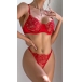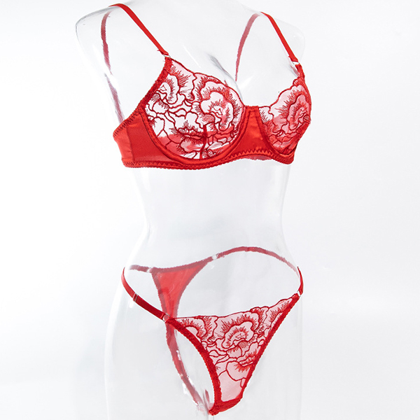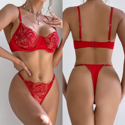 Sexy Floral Embroidery Red Two-piece Lingerie Set