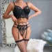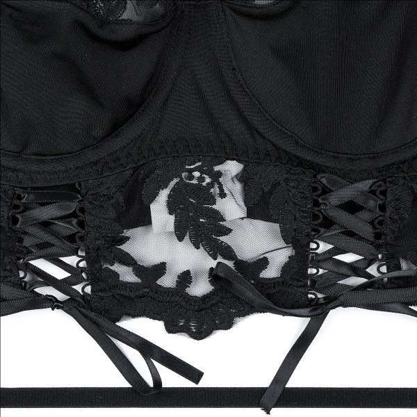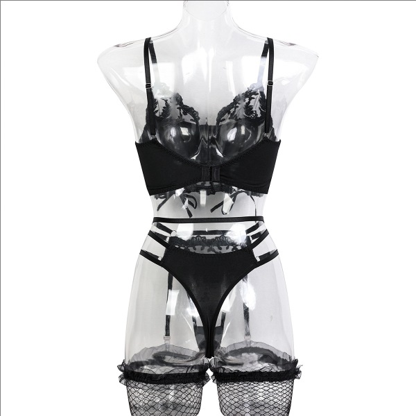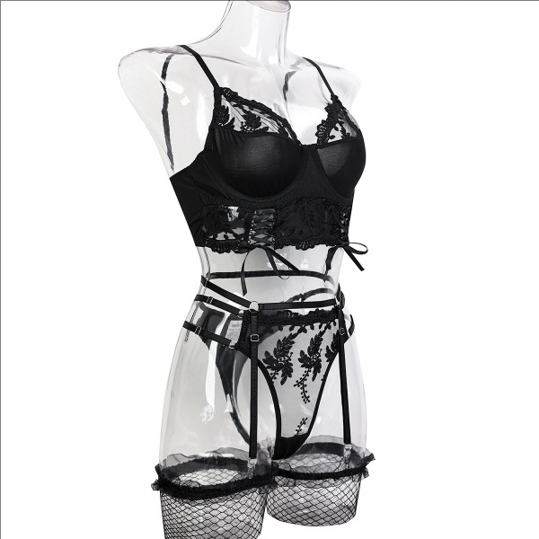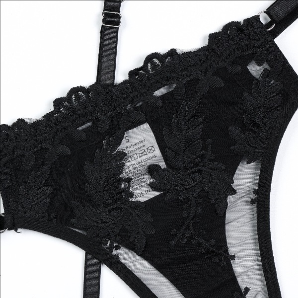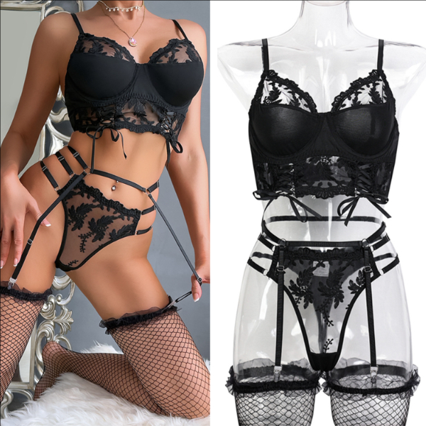 Sexy Floral Embroidery Ruffle Lingerie Set with Socks