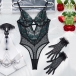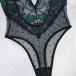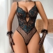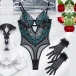 Sexy Floral Embroidery Semi-through Lace Lingerie Bodysuit with Gloves
